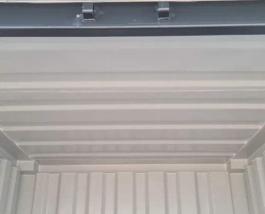 Notre conteneur de stockage 10 pieds dispose d’une ossature réalisée en profils d’acier, épaisseur 3mm, entièrement soudés. Les parois et le plafond sont en tôle laminée d’épaisseur 1,5mm et le plancher est en bois massif, épaisseur 25mm, traité anti-humidité. Il est équipé d’un volet de protection pour le cadenas.