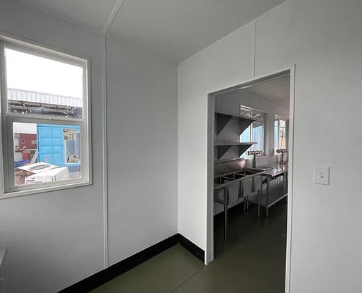 - Qté1 – Double vitrage de 2 pieds sur 4 pieds, Low E, fixe, cadre métallique, linteau de 7 pieds ((avant du conteneur)