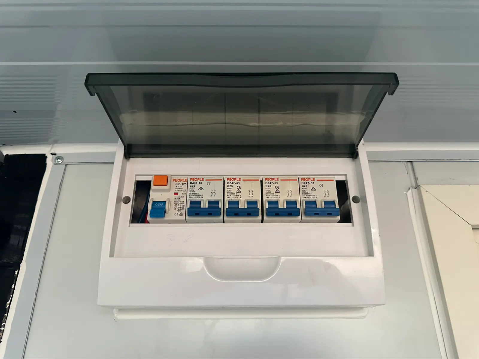 Equipé d’un dépliant ; murs et toiture isolés ; cuisine d’angle avec comptoir, évier, mitigeur, armoires supérieures, armoires de cuisine et tiroirs ; 2 chambres / pièces supplémentaires ; salle de bain avec toilettes, douche à effet pluie, lavabo avec miroir et robinetterie de toilette ; Plancher SPC en aspect bois ; prises de courant (connexion 230 volts) ; huisseries à double vitrage ; l’eau, l’électricité et le drainage peuvent être facilement connectés est préparé ; portes coulissantes ; armoire à compteurs ; interrupteurs d’éclairage ; points de raccordement pour l’éclairage au plafond (y compris les plafonniers) ; y compris les plinthes en aluminium pour le sol ; verrouillable avec clé ; dimensions déplié 5.9×6.4×2.53 mètres ; dimensions plié 5.90×2.22×2.54 mètres (dimensions de transport) ; inutilisé