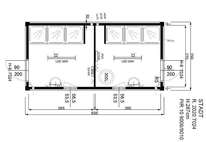 Demande de devis pour : Conteneur Sanitaire 3×6 Divisé