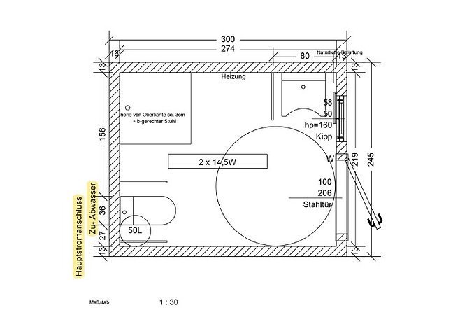 Raccordements Eau et Eaux Usées : Installation complète dans les parois, évacuation des eaux usées en tuyaux de 110 mm, alimentation en eau PE32 avec vanne, tuyaux en PVC soudés.