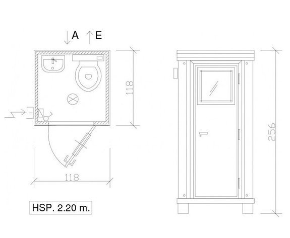 Ce module n’est pas modifiable, mais il existe aussi en configuration avec deux WC : Bloc sanitaire SS1, ou avec un WC et une douche: bloc sanitaire SD1.