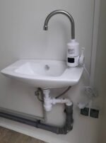 Chauffe-eau instantané : Un chauffe-eau instantané est installé à côté du robinet, fournissant de l’eau chaude immédiatement.