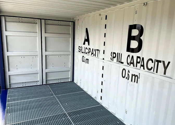 Matériau : Souvent fabriqué en acier ou en plastique résistant aux produits chimiques, et intégré au plancher du conteneur.