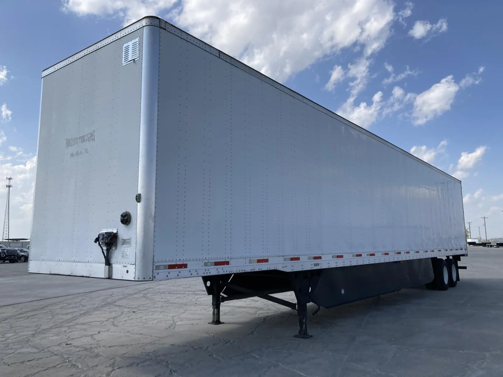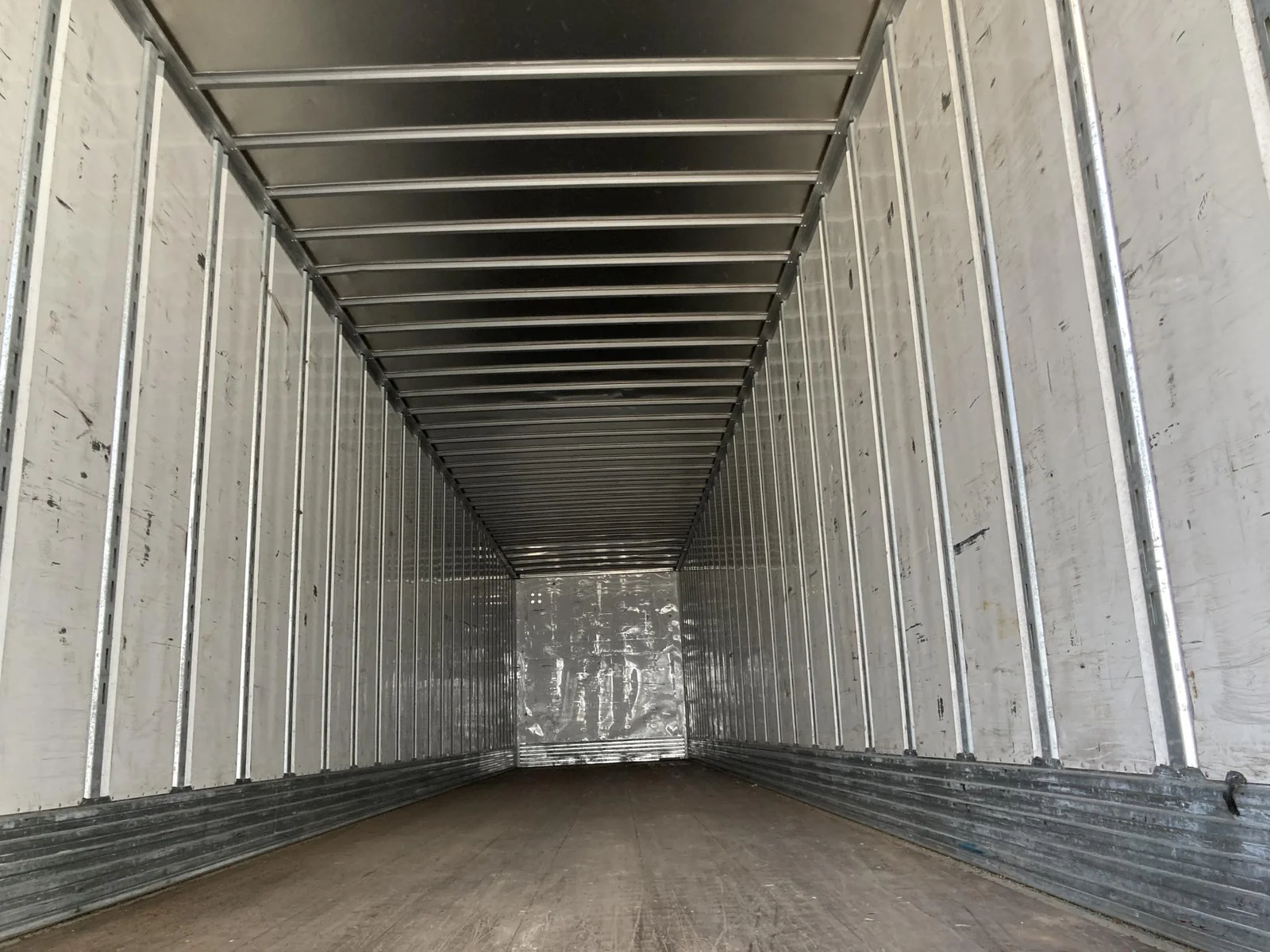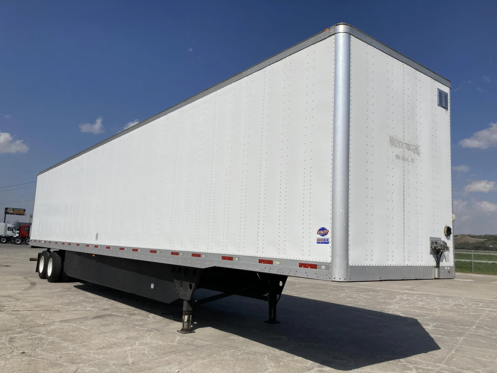 Remorque fourgonnette utilitaire 2020 53’x102″, 65000 pnb, axe de 36″, suspension pneumatique, essieu tandem coulissant, freins pneumatiques 75%, pneus 295/75R22.5 (12/32), porte battante, toit plein, plancher en bois, rail E