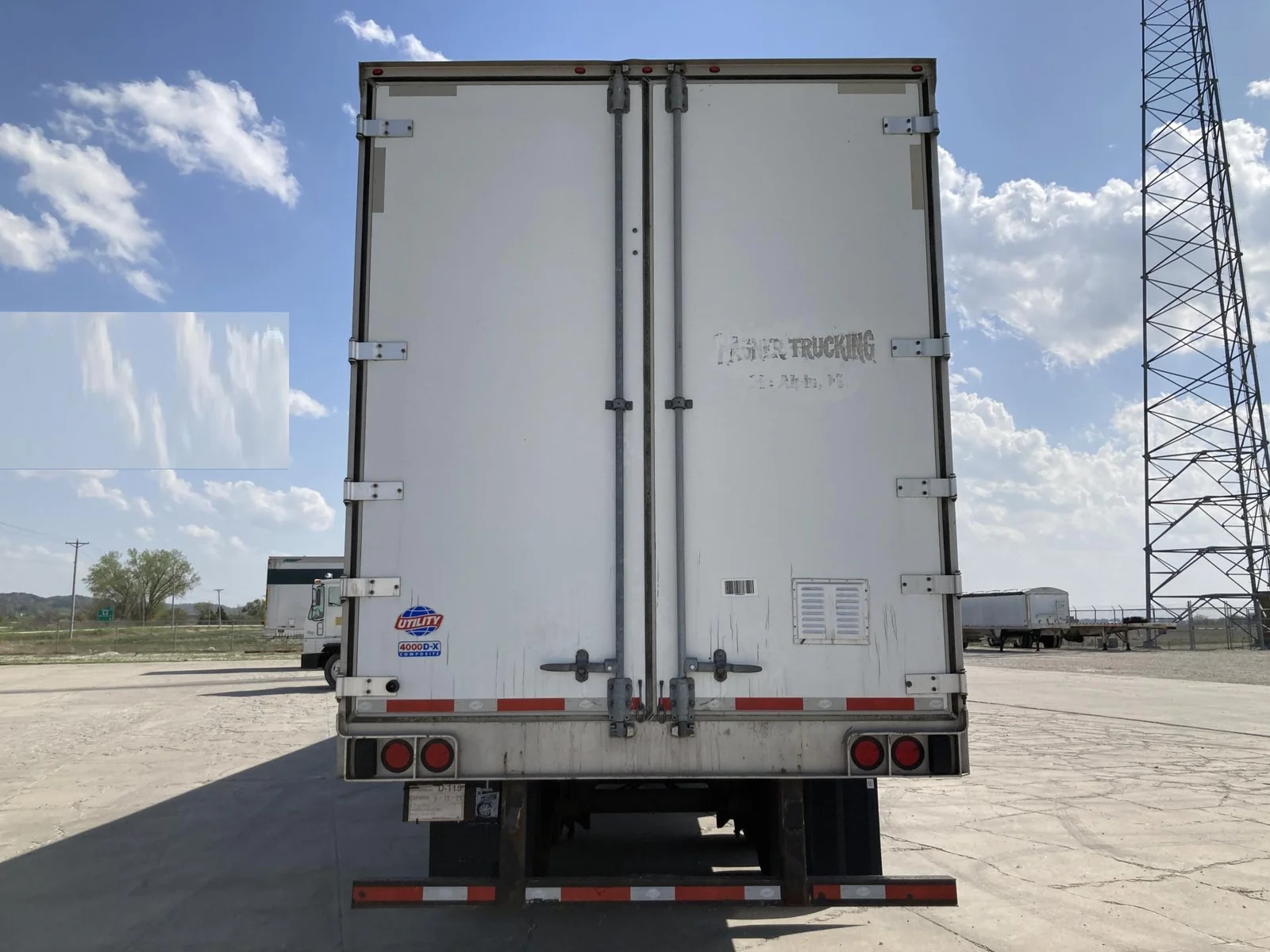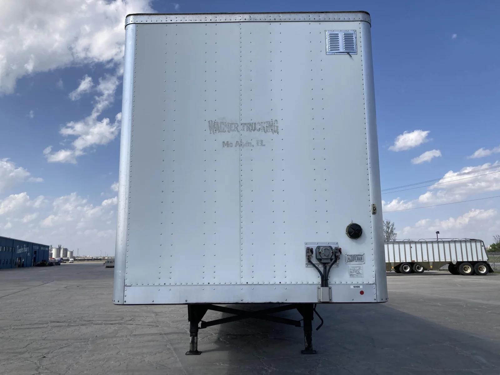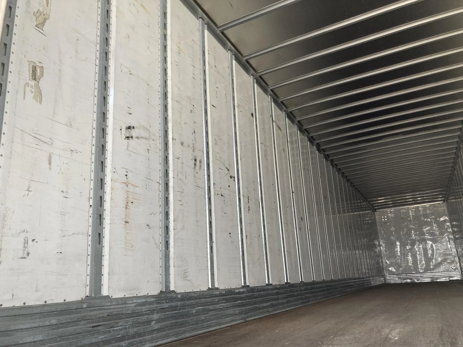 Remorque fourgonnette utilitaire 2020 53’x102″, 65000 pnb, axe de 36″, suspension pneumatique, essieu tandem coulissant, freins pneumatiques 75%, pneus 295/75R22.5 (12/32), porte battante, toit plein, plancher en bois, rail E